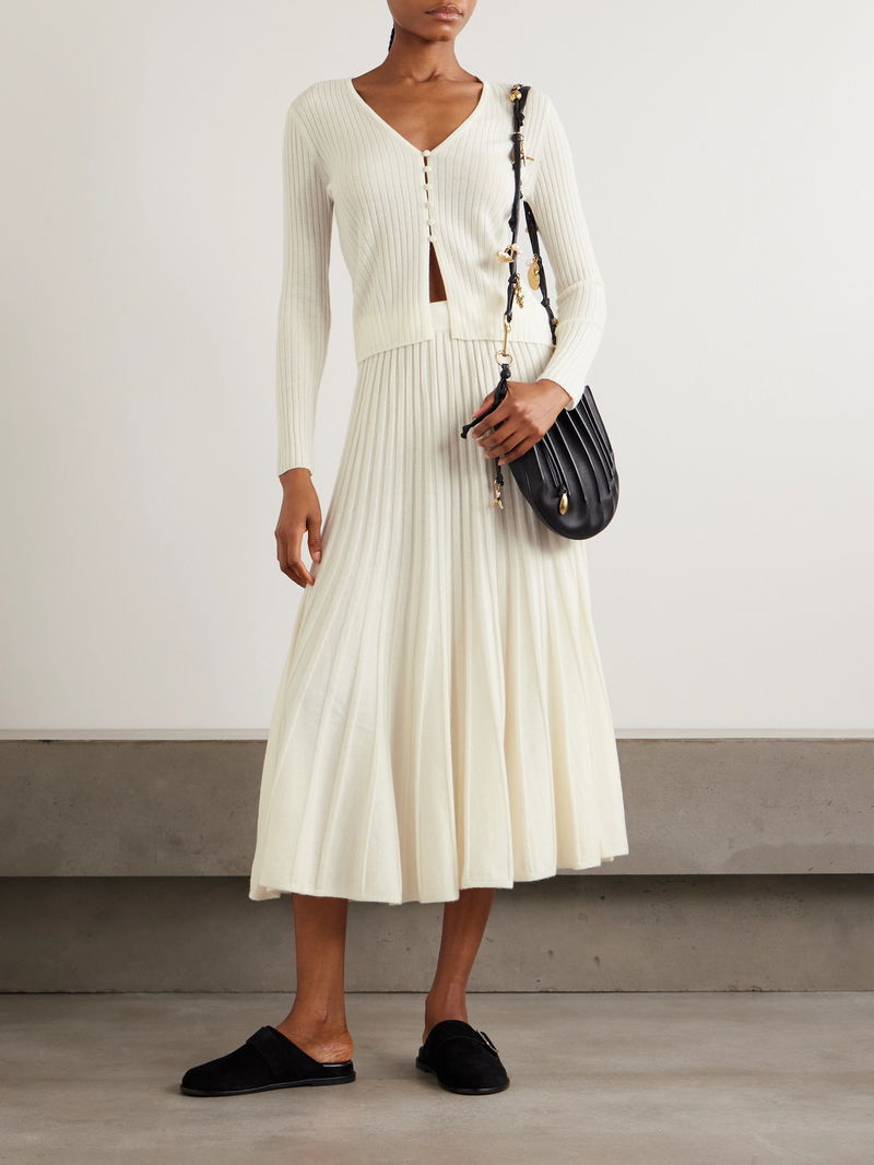 Arch4's 'Sabrina' skirt is so timeless. Knitted from organic cashmere that guarantees warmth, it's pleated and flares out towards the hem. Wear yours with ballet flats or mules and a simple cardigan.