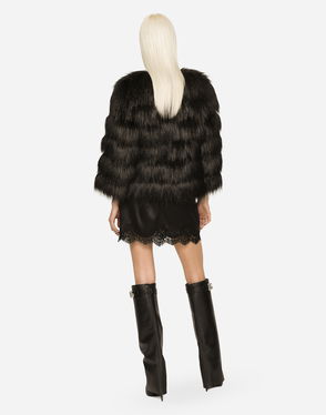 This cropped jacket from Area puts a playful spin on office attire. The classic Houndstooth checked pattern is offset by green faux fur trims that make a chic statement when paired with the matching minidress.