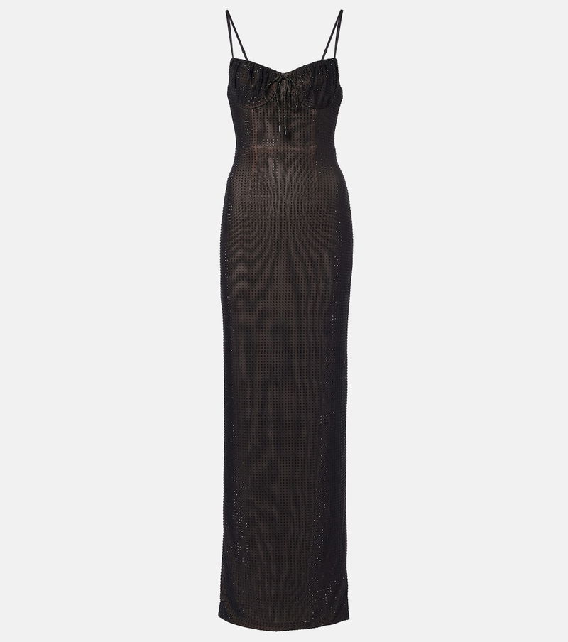 Crystal-Embellished Mesh Maxi Dress