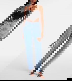 Crystal-embellished Denim Crop Top
