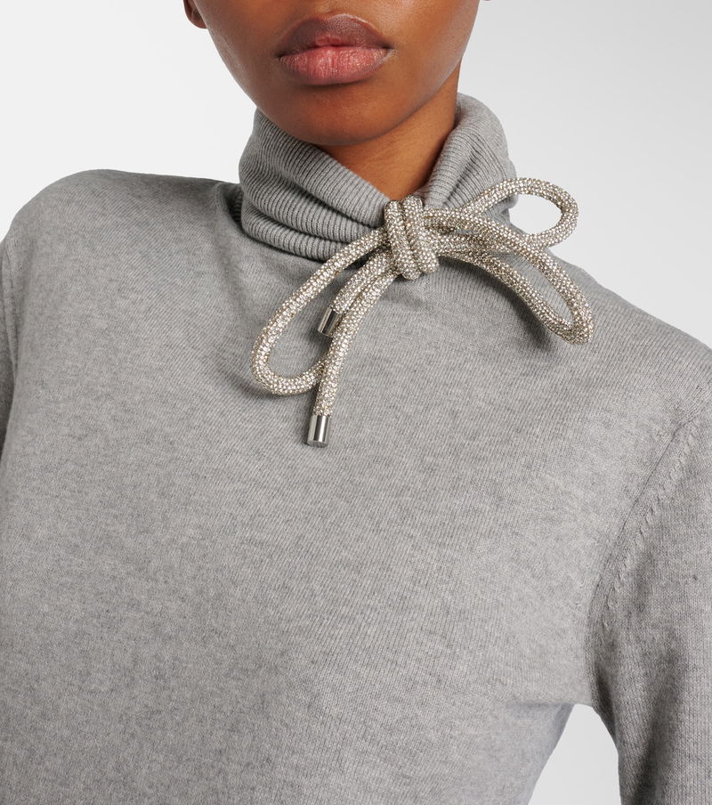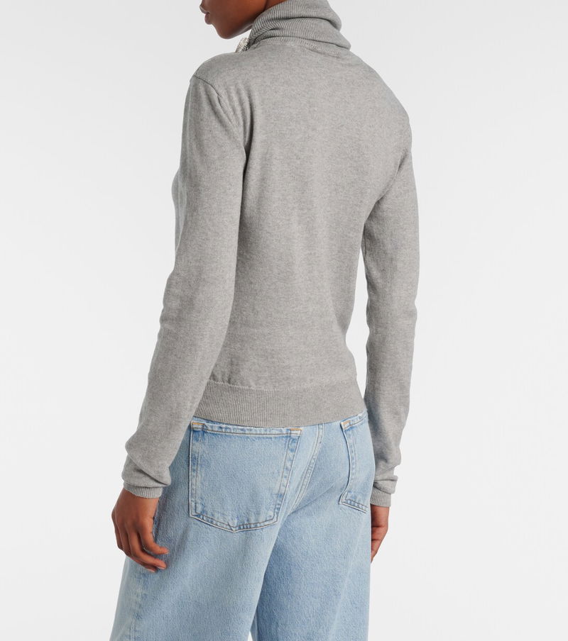 Embellished Cotton And Cashmere Turtleneck Sweater