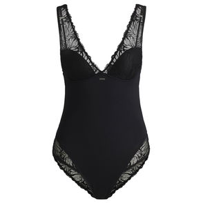 Asymmetric-Neck Stretch-Woven Bodysuit