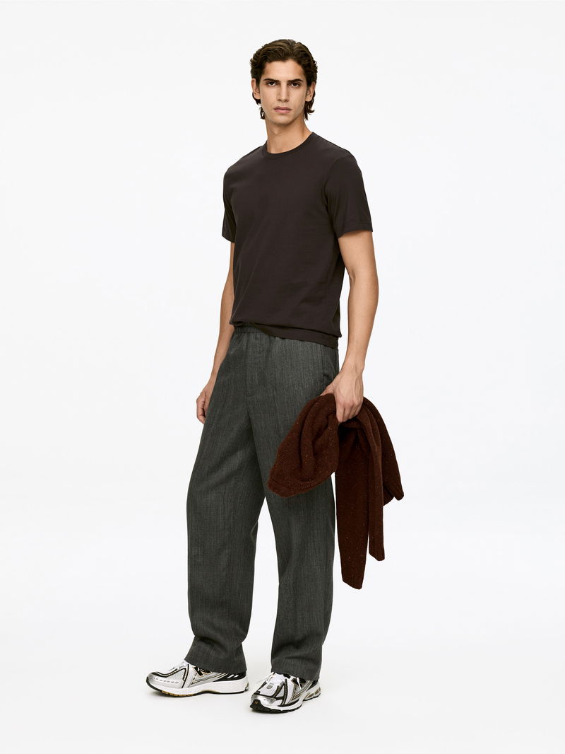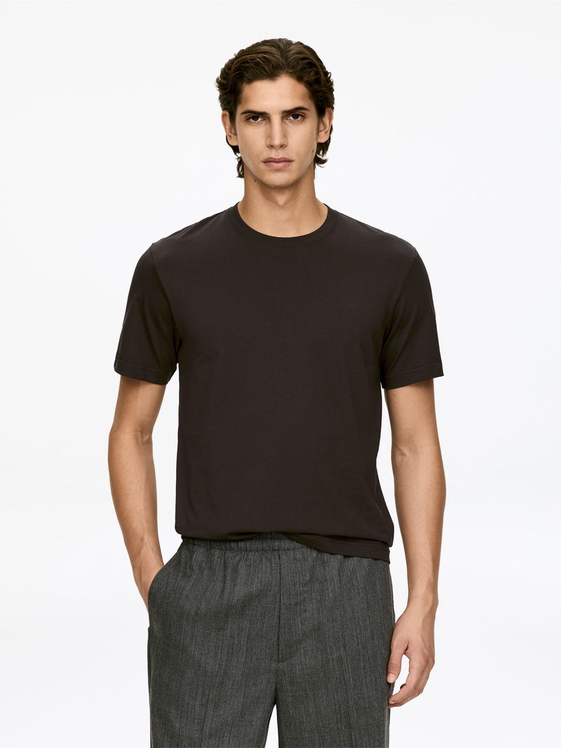Arket's more refined T-shirt, ideal for layering or wearing on its own. This classic crewneck comes in a regular fit, designed with slightly shorter, more fitted sleeves and a tailored cut through the body and neckline. Made from long-staple cotton in a 170 GSM single jersey, and finished with 1x1 rib at the neck.