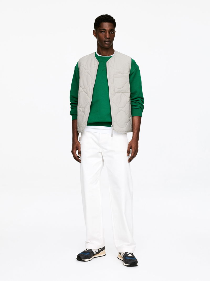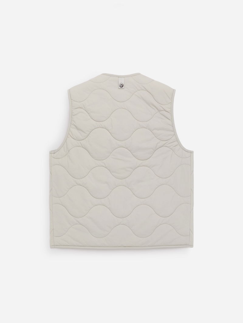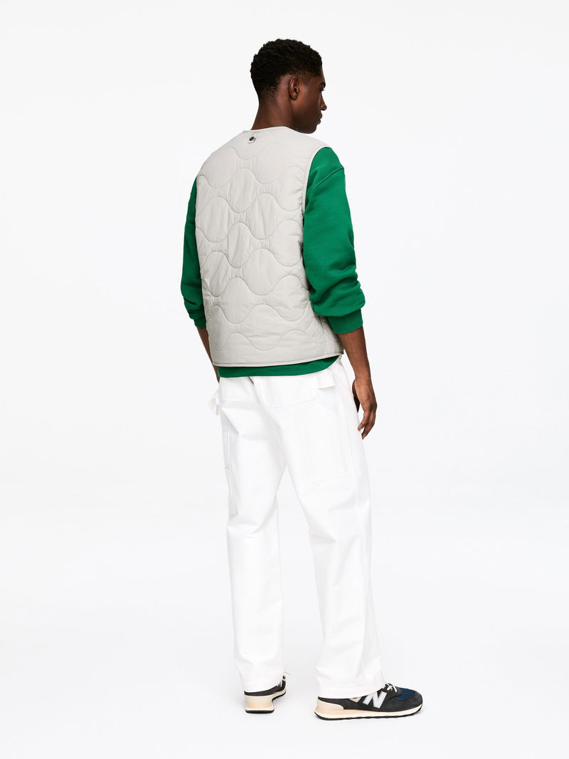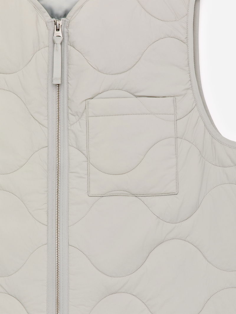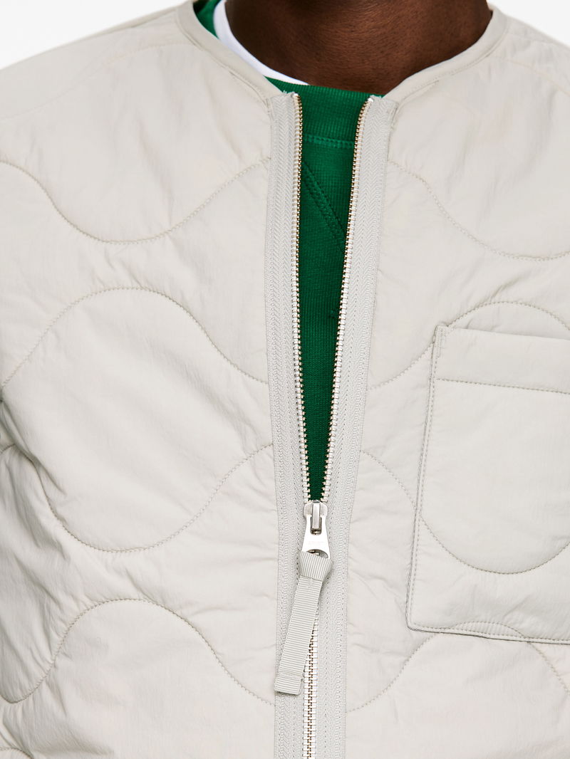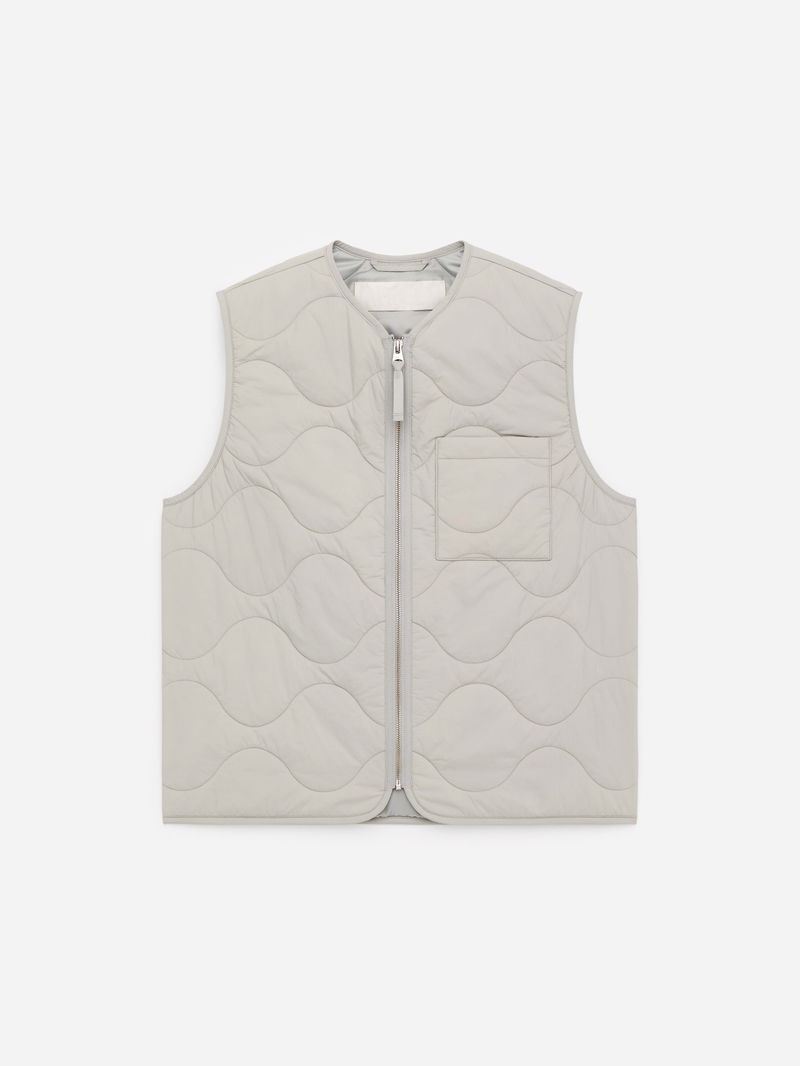 Compact padded vest with ARKET's signature onion quilting. The shell fabric is a rip stop construction and the padding offers lightweight insulation. The vest is detailed with a front zip, a patch pocket at left-hand side and an inner patch pocket. Windproof material and water-repellent finish. This garment is part of the 2-in-1 Series, a modular outerwear system that includes shells and insulating liners specifically designed to be snapped together, forming a fully padded coat.