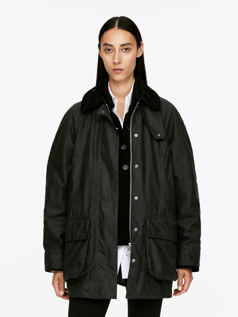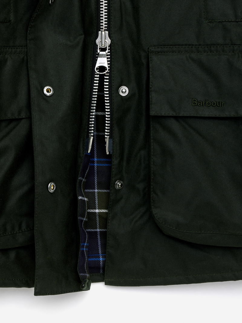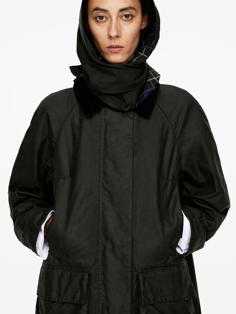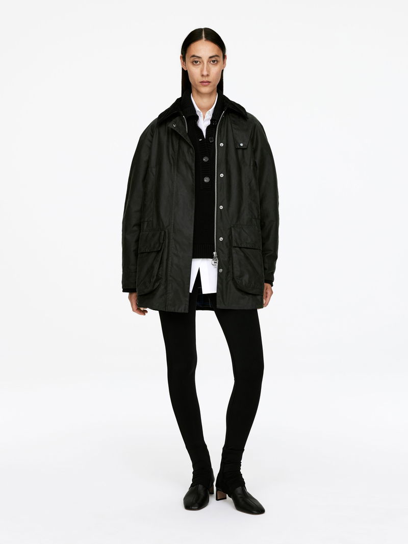Inspired by the classic Barbour Gamefair, this exclusive ARKET and Barbour jacket is crafted from waxed cotton with a custom-designed tartan lining and corduroy collar. Functional details include a press-stud zip placket, storm flap, and brushed-cotton hand-warmer pockets. Designed for modular layering, it can be combined with the ARKET and Barbour Quilted Vest to create a fully padded coat.Part of the ARKET and Barbour collaboration – a collection shaped by British and Nordic weather and a shared passion for the outdoors.