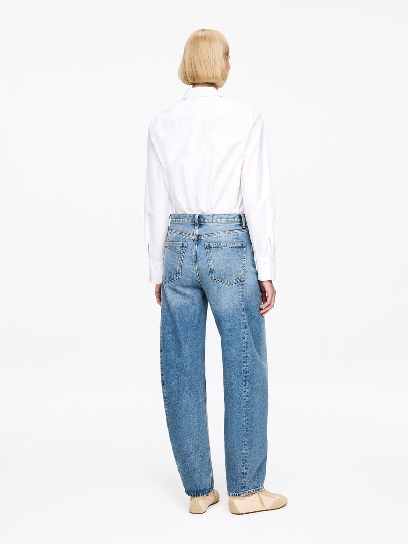 BLOOM is cut from non-stretch denim and features a mid-rise waist, relaxed fit and sculpted, cropped legs. Zip fly.