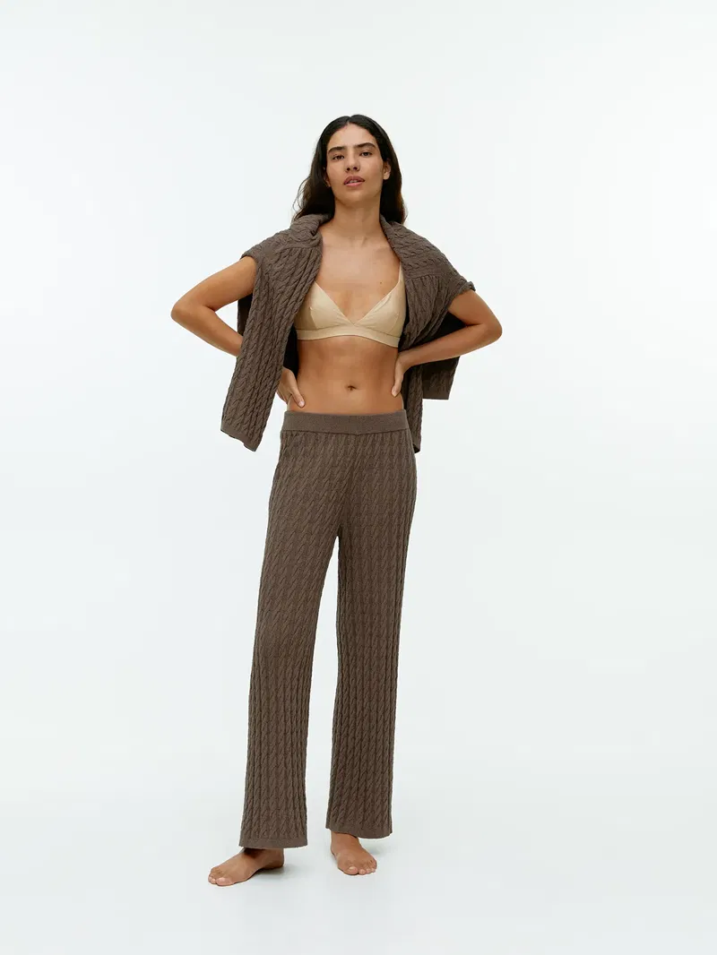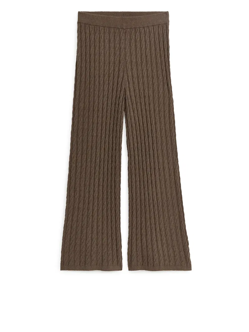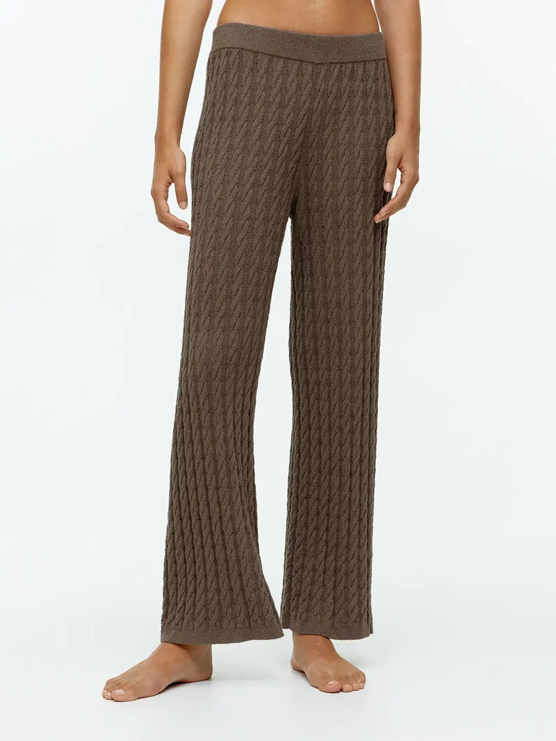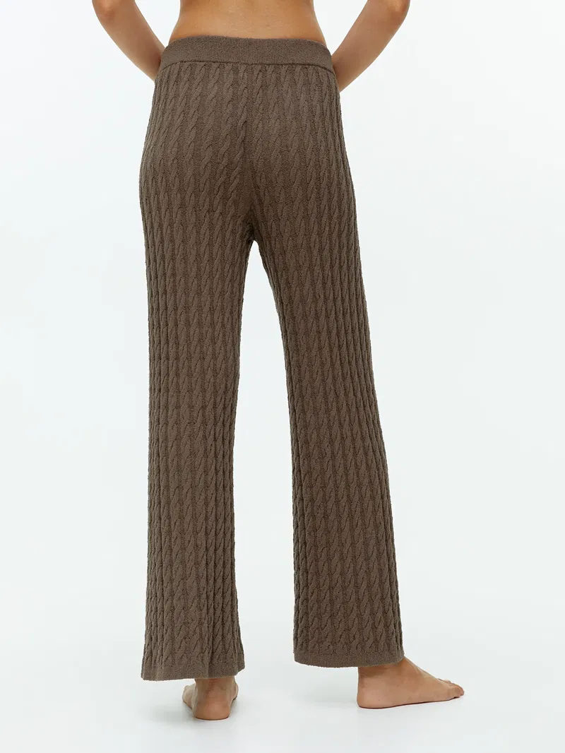 Cable-knitted trousers with textured surface made from a soft cotton blend. Ribbed trims. Elastics at inside waistband.