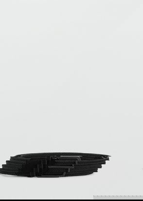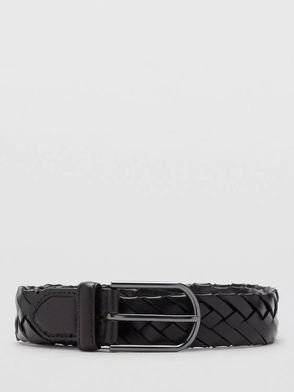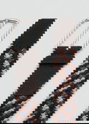 Braided belt made from elasticated cords. Trimmed with leather details.