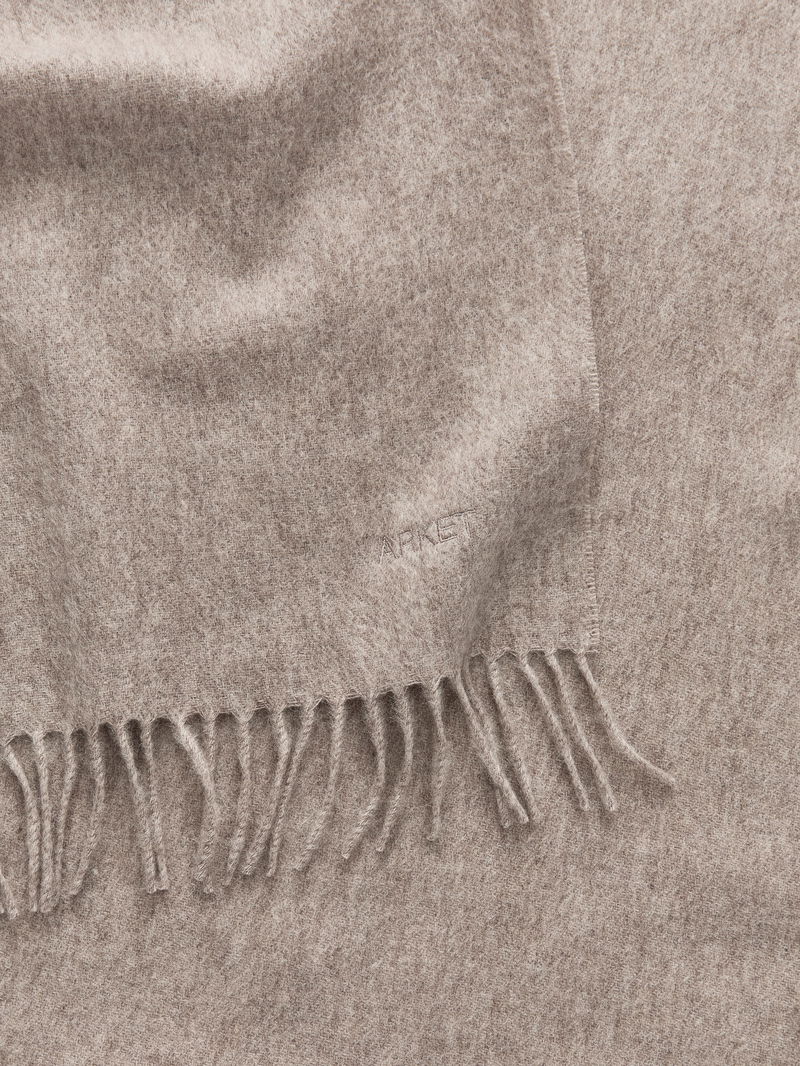 Soft, woven scarf made of pure cashmere. Detailed with fringes and a subtle ARKET logo embroidery.