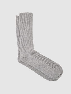 Soft socks knitted in a cashmere blend. Rib-knitted shafts.