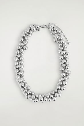 Made from small rings, each with a slightly irregular shape, this necklace features a chunky close-to-the-neck design. Crafted from recycled brass with a silver plating.