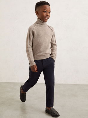 A half cardigan stitch gives a rich, chunky feel to this knitted jumper, while the blend of cotton and cashmere provides a unique softness. A crew-neck style with sleeves in contrasting colour. Designed with a straight silhouette, slightly longer at the back and detailed with slits at side seams.