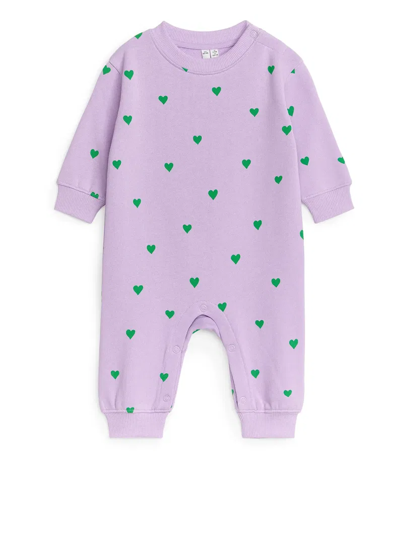 Overall made in a soft French terry fabric made from cotton. Cut for a regular fit and styled with ribbed trims. Snap buttons in crotch and at shoulder for easy dressing.