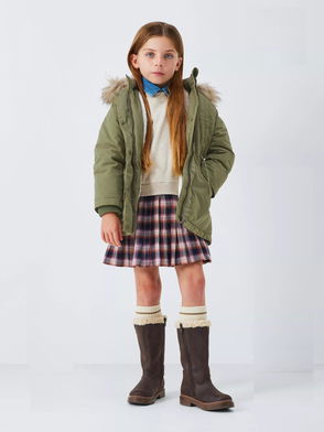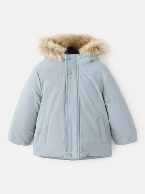 Parka with a detachable hood and slanted pockets with flaps. Zip and press button closure. Regular fit.