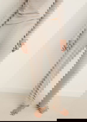 Pull-on pyjama bottoms with a high waist and wide, slightly cropped legs. Elastics at waist.