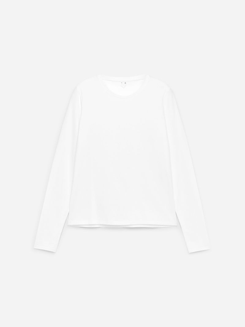 Long-sleeved T-shirt in soft cotton jersey with a hint of elastane for comfort. A refined essential, finished with a fine rib trim at the neckline for a clean look. Slim fit.