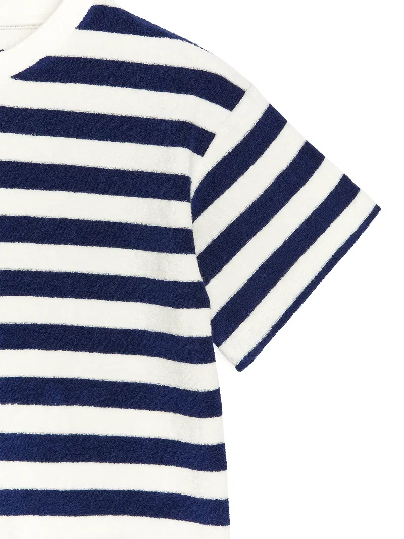An organic cotton towelling fabric brings a soft, looped texture to this T-shirt. A classic short-sleeve style with a crew neck.