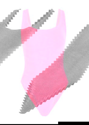 Halterneck swimsuit featuring a crinkled surface. Designed with high-leg opening and a low back. Medium support.