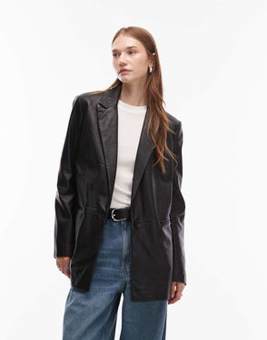 Styled with a cropped and boxy fit, this single-button blazer is cut from a soft and supple leather that has undergone a chrome-free tanning process. Detailed with a patch pocket at chest and fitting darts for a neat look.