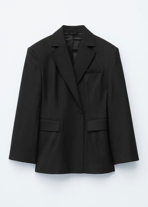 Cut for a slightly oversized fit, this double breasted blazer is styled with two welt pockets at front with pocket flaps, a press crease detail along the sleeves and a single vent at the back. The wool fabric, woven by an Italian mill, is a hopsack construction – a loose basket weave with a subtle geometric texture that makes the garment durable and airy, naturally resistant to wrinkling.