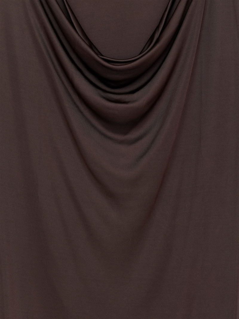 Top crafted from fluid jersey with a subtle sheen, draping elegantly over the body. Features a draped neckline and a slim fit.