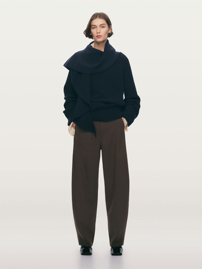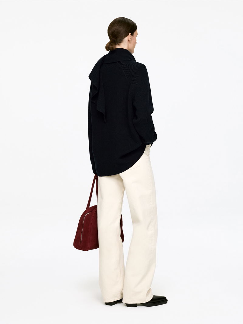 Crew-neck jumper in a wool-cotton blend, featuring an attached scarf detail at the neckline. Designed for a loose fit.