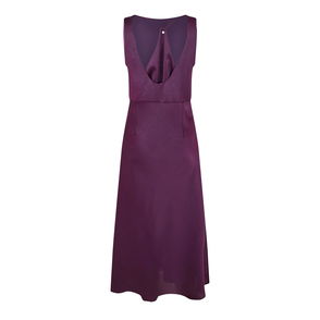Made from a silky, lustrous fabric with a satin finish, this sleeveless dress is an ideal piece for special occasions. A straight fitted look with a subtle flare, cut at a mid-calf length. Accented with drawstring detailing on the sides and a keyhole opening with string closure at the back.