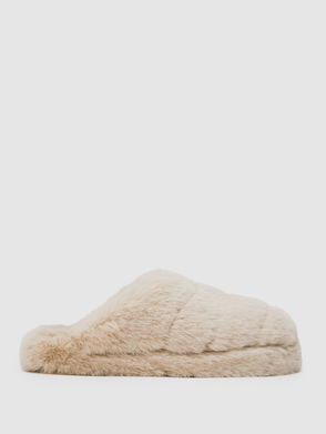 Crafted from faux fur made of recycled polyester, these soft slippers are perfect for a cosy day at home. Featuring elastics around the opening for a comfortable fit and lined with cotton jersey. The sole is made of suede with natural anti slip properties. The suede used has undergone a chrome-free tanning process.