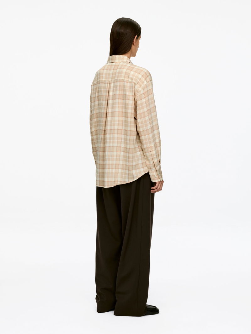 Light flannel shirt crafted from a cotton and viscose blend, with a hint of wool. An oversized style with chest pockets with flaps.