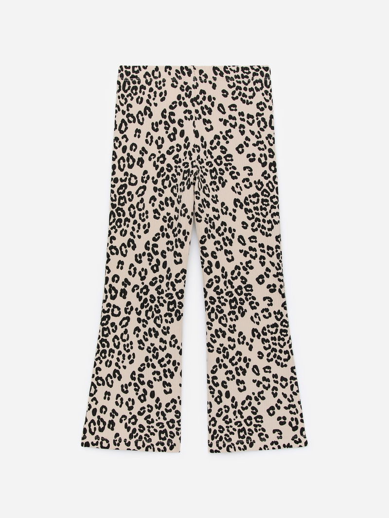 Ribbed leggings with flared legs crafted from cotton with a hint of elastane for stretch. Adjustable elastics at waist.