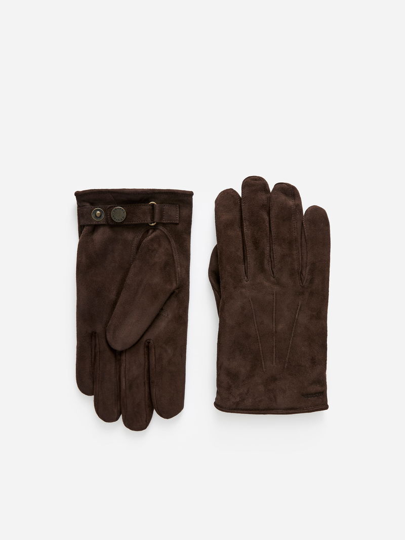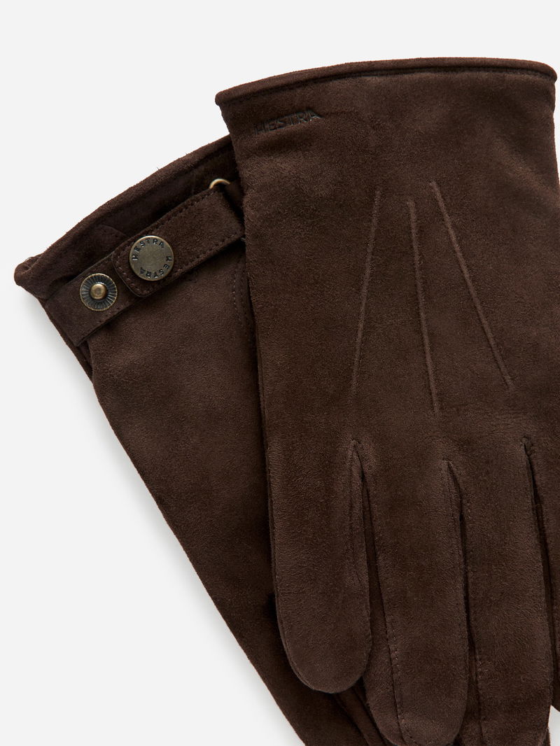 A short, smart suede glove with a knitted wool lining. Sewn in soft, Italian lambskin suede with a strap and snap button at the inside wrist. A light, warming winter glove that works equally well for everyday wear or out in the countryside. From the well-renowned Swedish glove manufacturer Hestra.