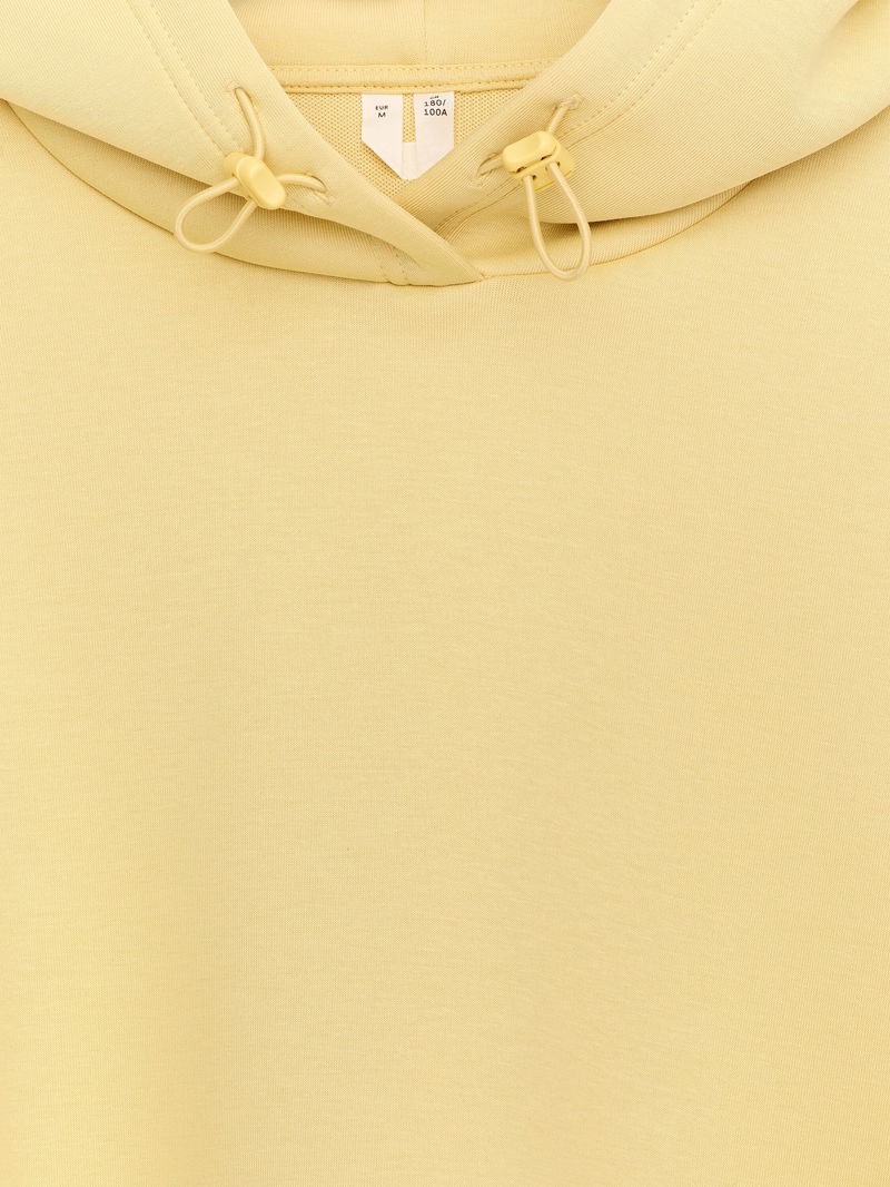 Crafted from a sturdy cotton blend, this hooded sweatshirt features a front pocket with side openings, and ribbed trimmings at cuffs and hemline. Drawstring with adjusters at hood opening.
