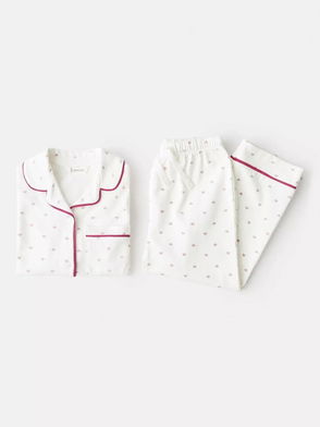 Sewn from a soft single jersey fabric, this two-piece pyjama is made of organic cotton. A crew-neck pyjama top with long sleeves, and trousers with elasticated waist. Ribbed cuffs at both sleeves and legs.