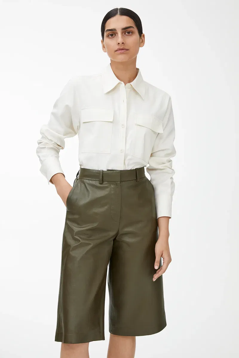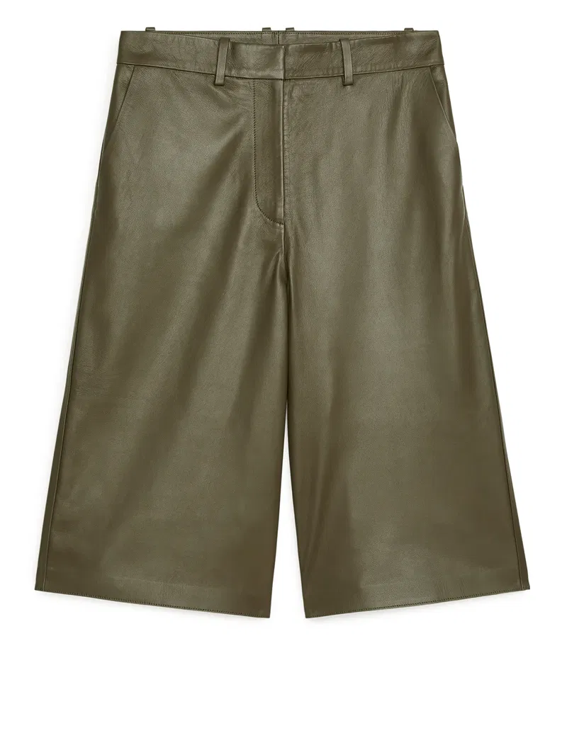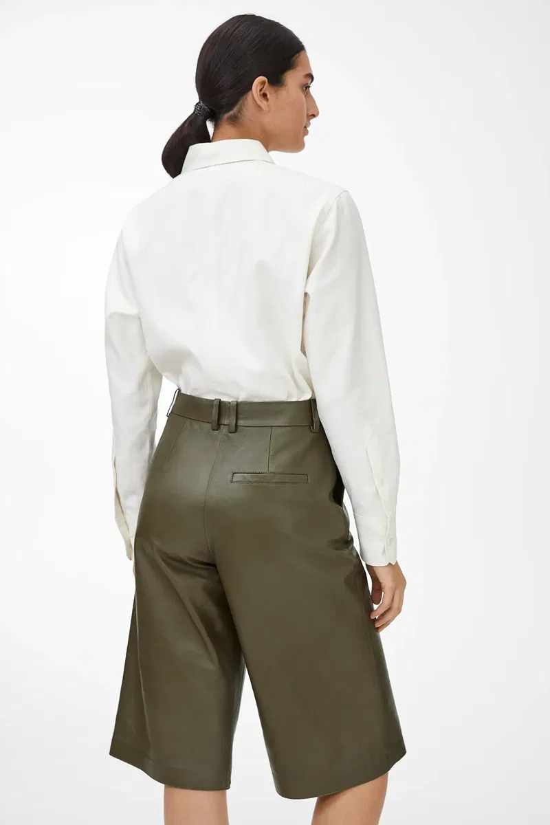 Crafted from soft premium leather that has undergone a chrome-free tanning process, these culottes feature a high waist and straight legs that fall just below the knee. Detailed with slanted side pockets, belt loops and and a single welt pocket at the back.