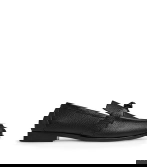 Classic leather loafers with a round toe shape and a thin outsole. Detailed with a decorative mid seam and puller at back.