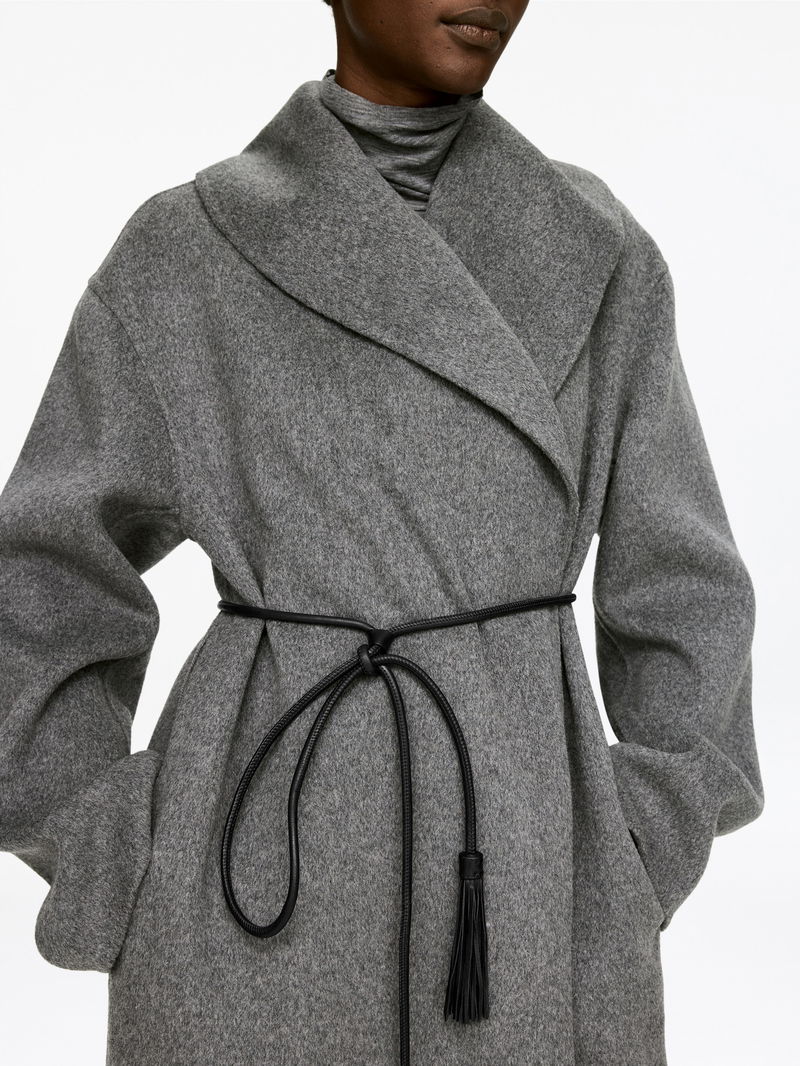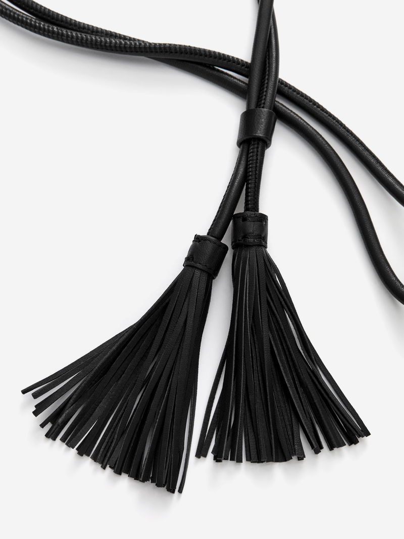 Tassel belt crafted from leather tanned without the use of chrome. The strap is designed with an end loop.