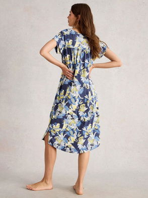 A soft linen weave grants comfort and breathability to this long-sleeved night shirt styled for a roomy fit. Featuring classic shirting detailing such as rounded hem, buttoned front and cuffs, this night shirt is detailed with side seam pockets.