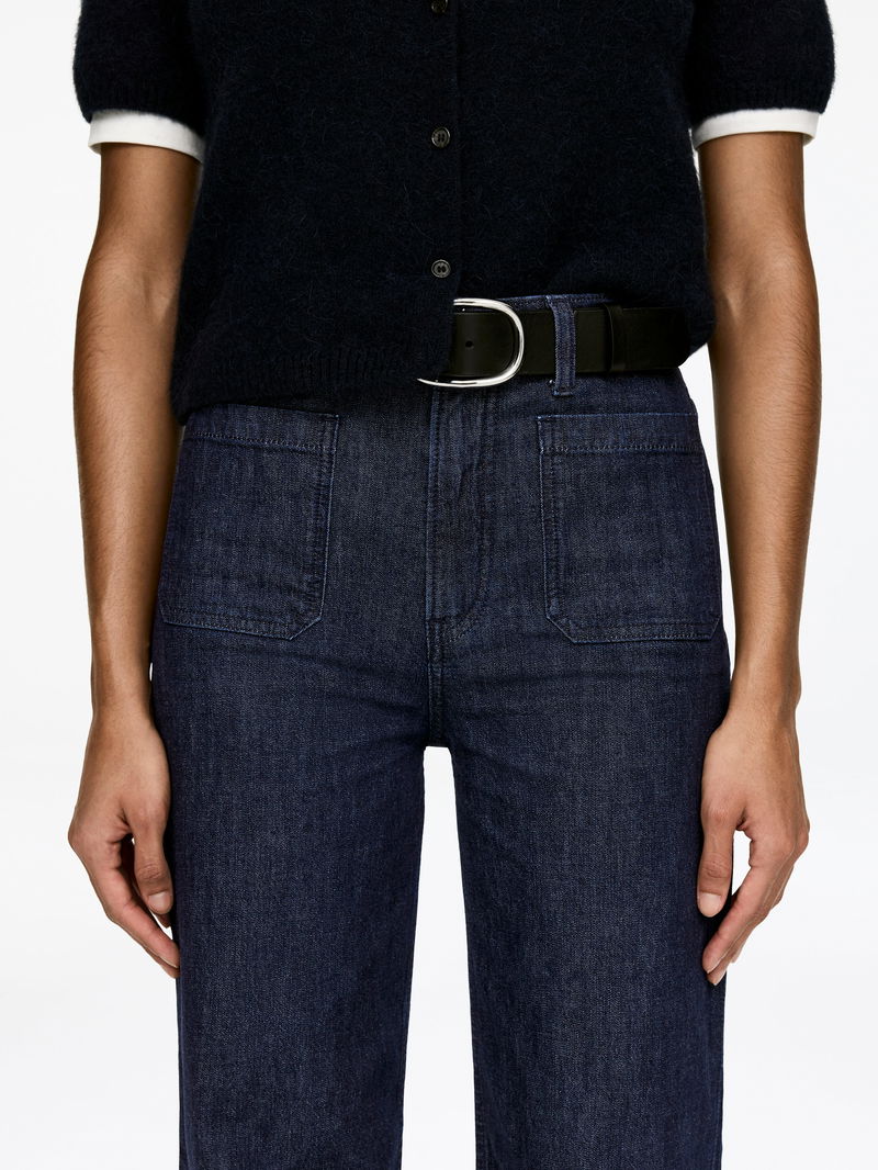 LUPINE is cut in a stretch denim and features a high rise waist, slim fit and flared legs. Patch pockets at front and back. Zip fly. Inside leg length 80 cm (size 38).