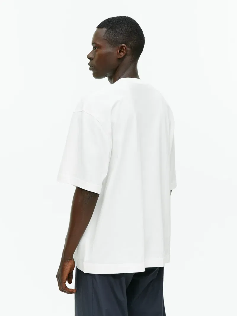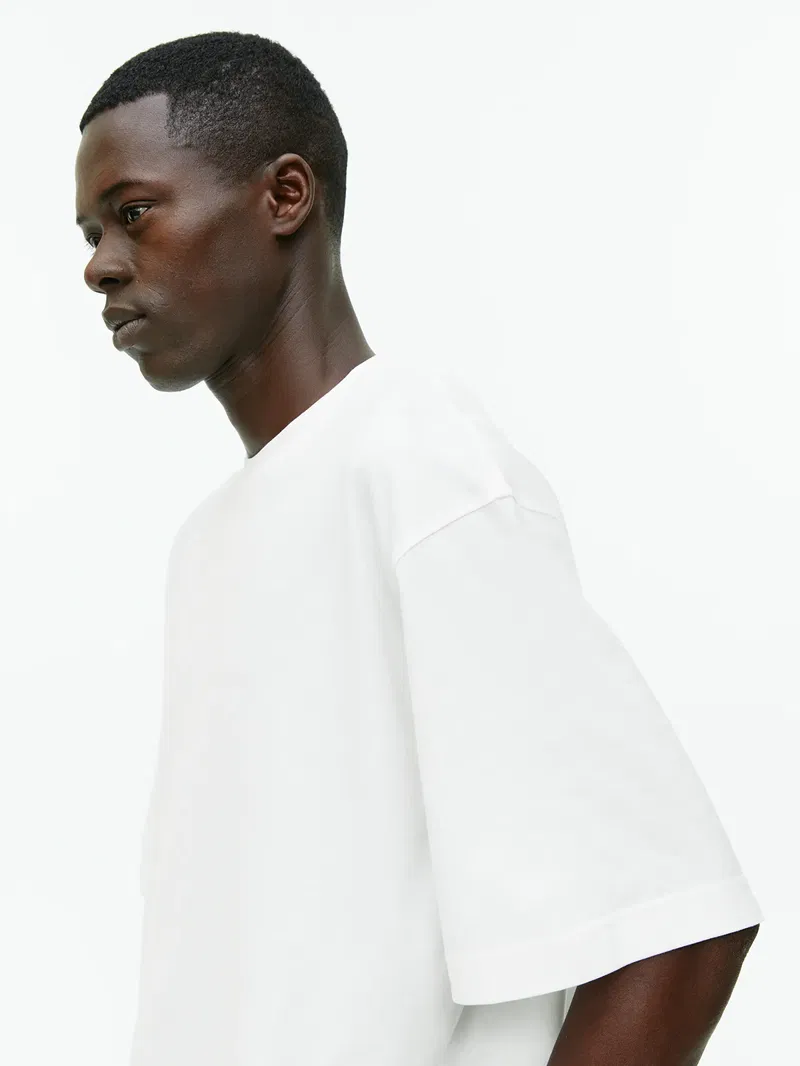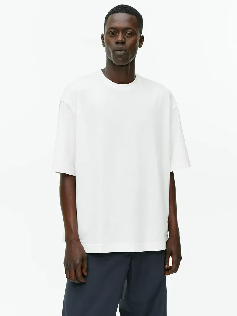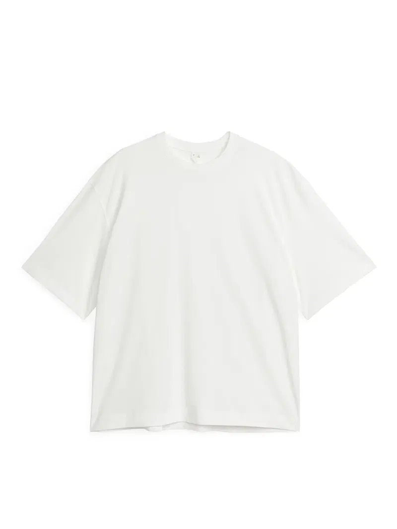 Oversized lightweight T-shirt with a peach-skin finish for an ultra-soft feel. Round neck and dropped shoulders detail the look.