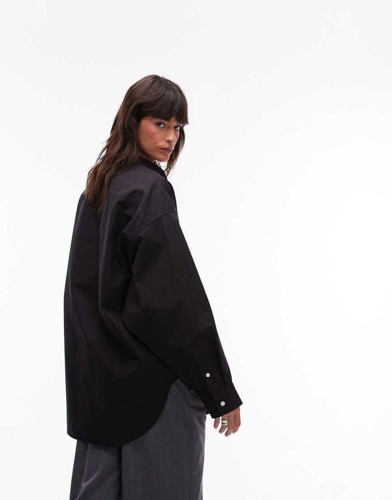 Top-half options Spread collar Button placket Batwing sleeves Chest pocket Curved hem Oversized fit.