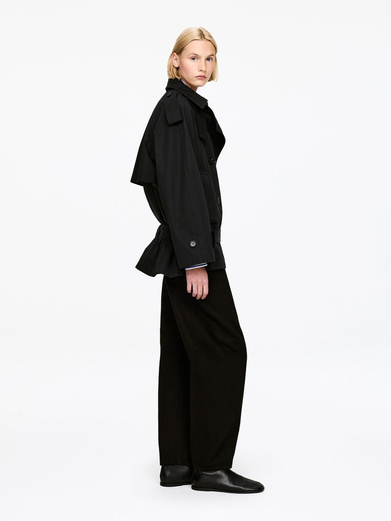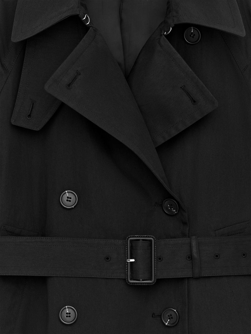 This iteration of the classic trench features a short, oversized silhouette and traditional detailing, including shoulder epaulettes, buttoned sleeve tabs and a waist belt. Finished with side pockets.
