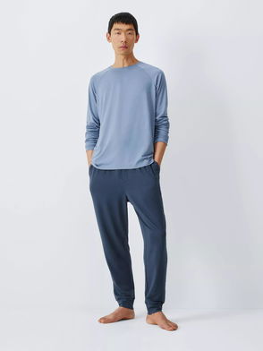 Pyjama trousers cut from a crisp cotton poplin. Styled with an elasticated waistband with a drawstring on the inside. Fly opening with Mother of pearl buttons - which means that this product contains details of animal origin. Pockets at side seams and a single pocket at the back.