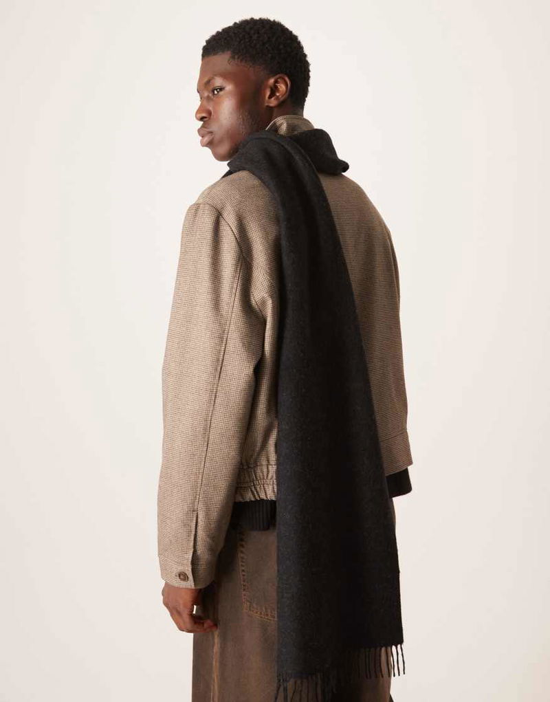 Premium wool scarf with fringing.
