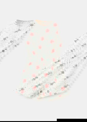 A loose-fitted jumpsuit sewn from a soft single jersey fabric made of organic cotton and featuring a colourful all-over print. A comfortable style with narrow shoulder straps and gatherings around neckline. Straight-cut, slighty cropped legs. Pockets in the side seams.