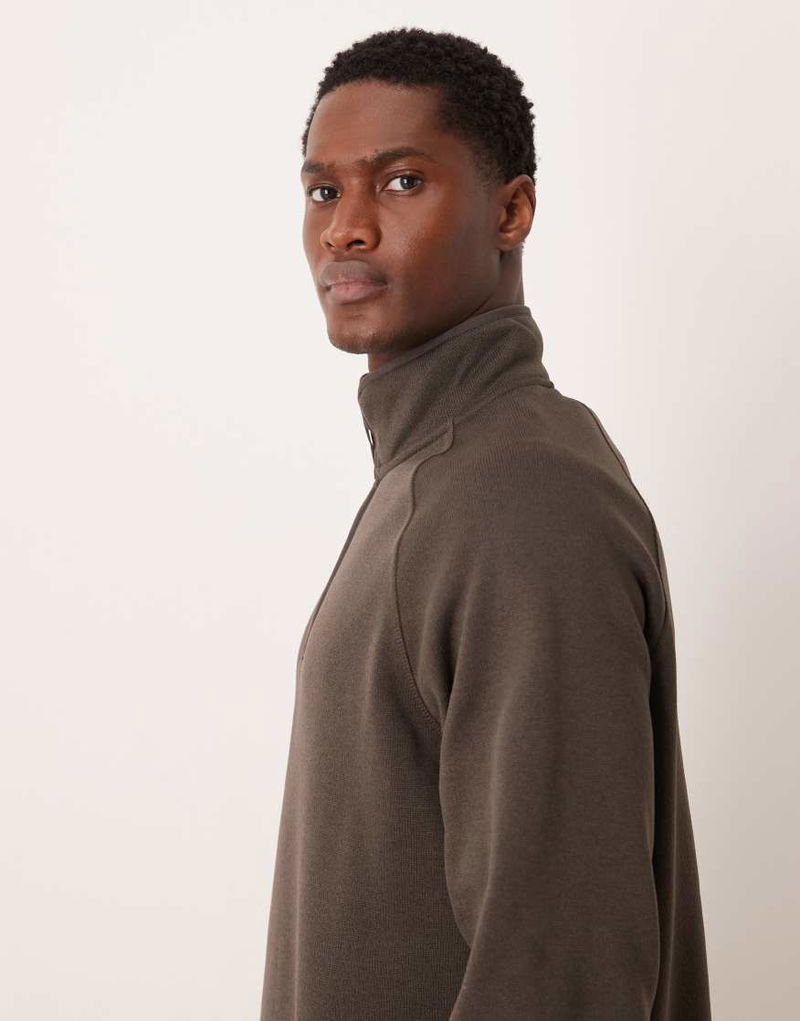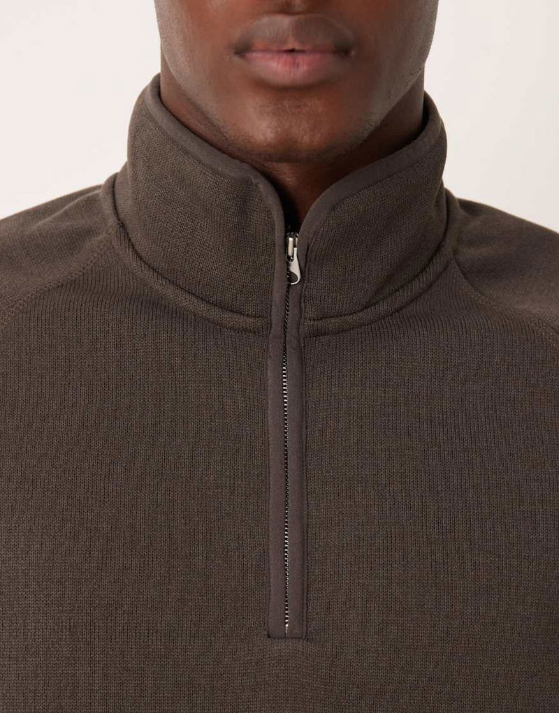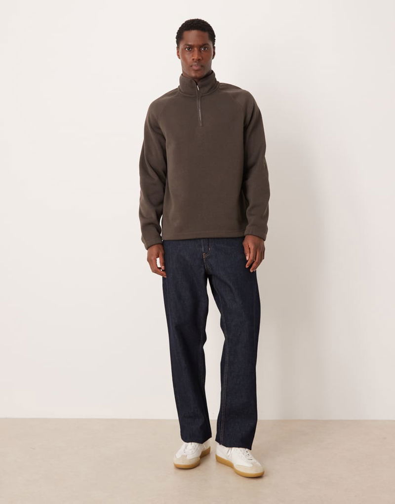 Pure Cotton Half Zip Fleece Sweatshirt In Brown