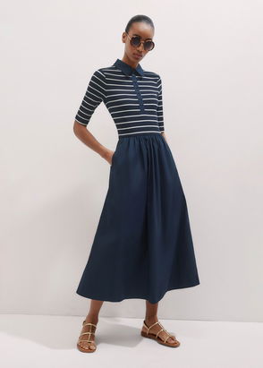 Pure Cotton Maxi Shirt Dress With Panelled Sleeves And Side Splits In Brown Stripe