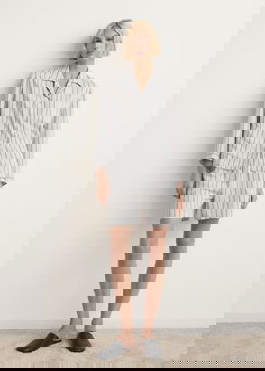 Pyjama shorts crafted from a soft cotton. Styled with elastics and drawstring at waist. Side pockets and a single back pocket.
