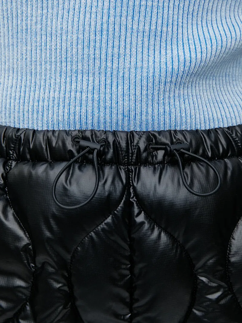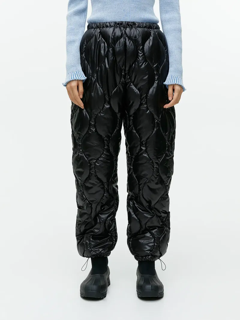 Light-padded, quilted trousers for outdoor use. Styled with an elasticated waist with an adjustable drawstring. Slanted side pockets and adjustable drawstring at bottom hem. Shell, lining and padding all made from recycled polyester.