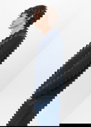 Knitted polo shirt with button closure crafted from a lyocell wool blend. This cardigan is detailed with slits at sides and raglan sleeves.