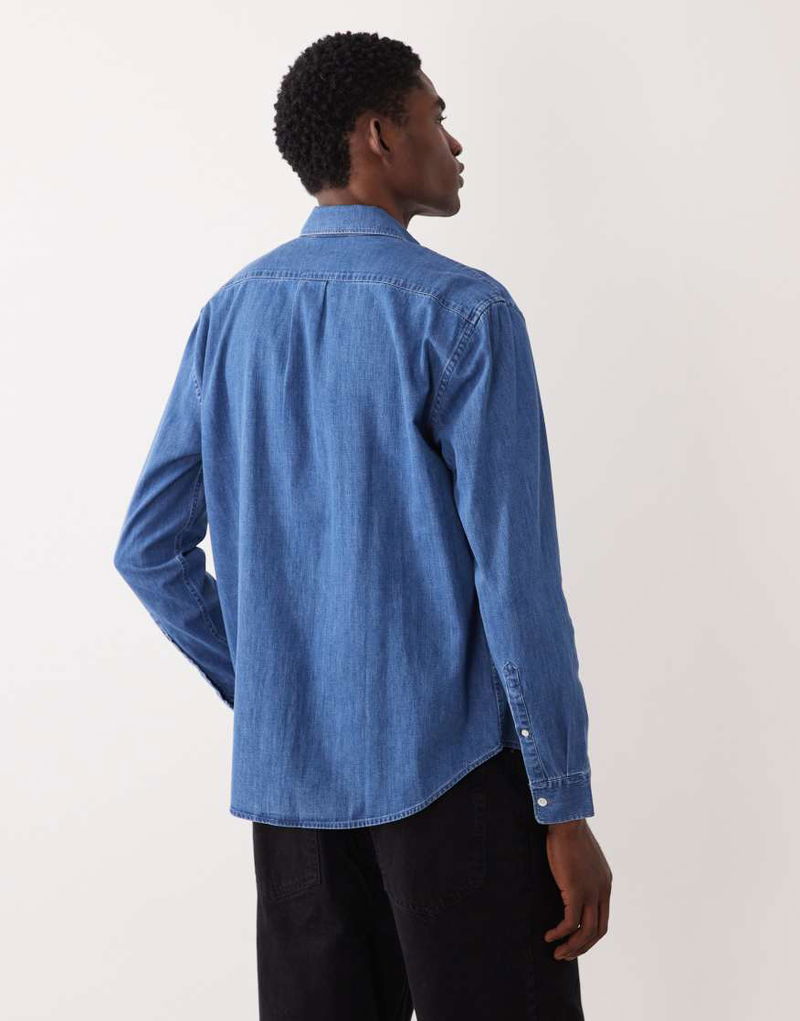 Regular Fit Denim Chambray Shirt In Mid Blue Wash